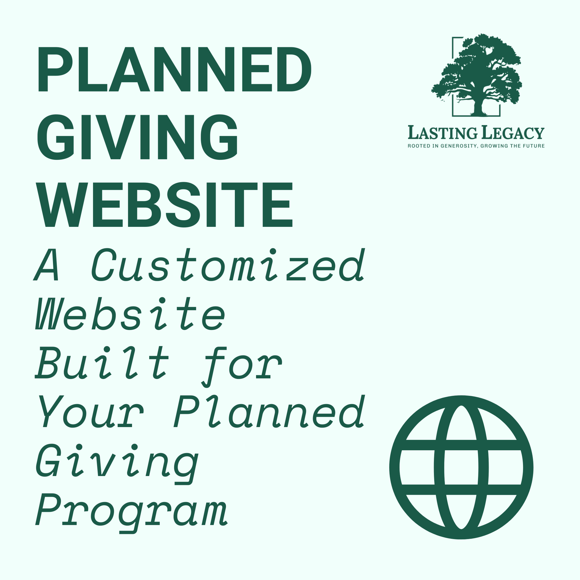At Lasting Legacy, we offer comprehensive planned giving website creation services tailored to nonprofits of all sizes. Our expert team designs and develops user-friendly, visually appealing websites that effectively communicate your organization's planned giving opportunities to potential donors. We understand the unique needs of different nonprofits, which is why we offer three distinct website packages: LegacyMicro for smaller shops, LegacyLite for organizations focusing on simple gifts, and LegacyPro for mature programs with advanced requirements.